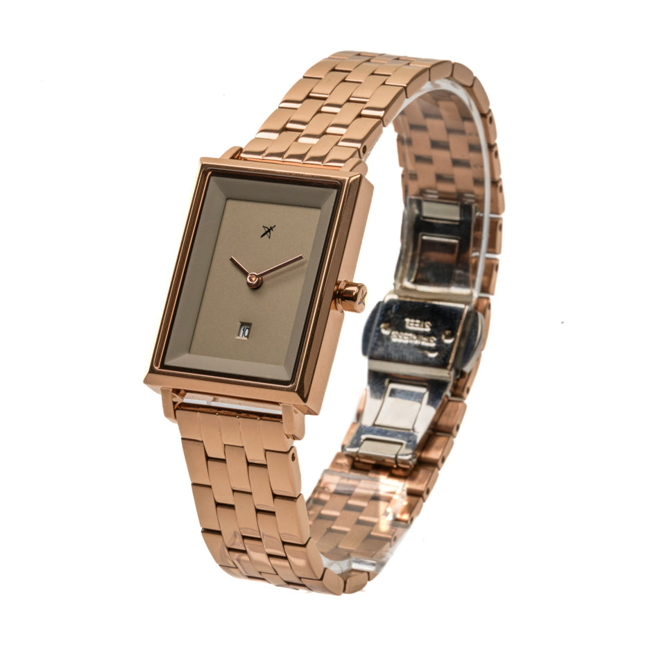 2023’s top rated rose gold plated stainless steel slim square luxury wrist watch for women. 3ATM, Japanese quartz movement with pin clasp